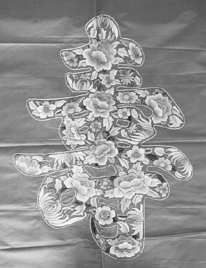 任老介绍说:“过去民间有女儿出嫁,(陪嫁的)都是绣花被绣花帐帘、绣花枕套,还有做的绣花花轿。”