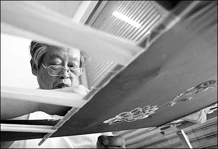 在汉口这个商业气息浓重的商贾之地,一户寻常人家的小作坊里,有股宁静幽雅的气息,彩色丝线飞扬,细密针脚疾走。那就是任本荣老人的家。走进任本荣那间工作室里,一幅幅精致的绣品分门别类地挂在墙上,这些绣品远看像是风俗工笔画,近看却是一针一线绣出来的。家中的绣品多为条屏、壁挂,题材以花卉人物、福禄寿喜以及佛经故事为主。任本荣告诉我们,一幅图案复杂的汉绣作品,从设计、绘画、打样、配色、针绣到最后装裱成型,往往要花上数月的功夫———他的家,更像是间小型汉绣艺术品博物馆。