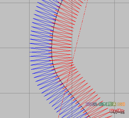 5.也许有人会问这样的偏移有什么作用呀,这你就错了,别小看偏移,有时能给你事半功倍的效果,如图5所示的红色包边,您可以照着黄色线条描边,然后再使用偏移功能使边向外偏移,这样画来的效果是最好的,又如图6所示的双层包针,您可以只画一条蓝色的线段,然后复制出来,然后使用偏移功能使之向左偏移,这样两条线段将是完全一模一样,整个线条的中间重叠部份也是一样均匀的,如果用其它办法是很难达到这样的,至于其它方面的应用则需要读者你们自己在实践应用中摸索了,不在一一介绍了。 |
