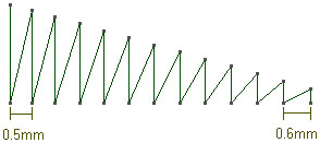 一般埃针的密度惯常是 0.4mm,但如果埃针的针距很短时,其空间已经减少相对密度亦已提高,使绣花线穿过时发生困难。我们便应该在针距短的时候把埃针的密度减少一点。 如使用 TAJIMA DG/ML 打版系统用户只须开启自动间距功能即可。