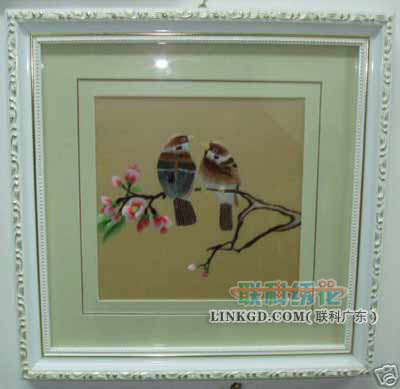 3、补画绣:这也是一种画、绣并行的方法。但它只绣画面的一小部分形象或者绣其中的主要部分或点缀品。
