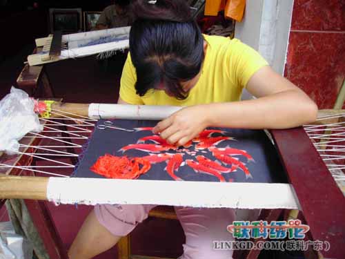 2、上稿(上稿前,先要审查拟用的画稿,根据画稿的内容和题材考虑绣种、针法,用哪一种质地的底料)。