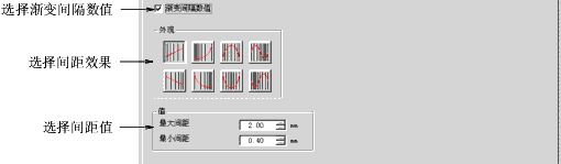 选择使用何种类型的渐变间隔数值,并在效果对话框中设定最大和最小间距值。