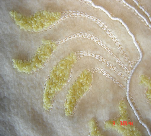 下图花样为毛巾绣、盘带、链目绣三种绣花集于一身