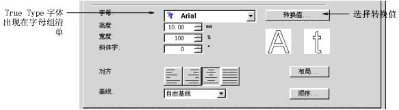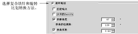 5. 指定是否文字作为旋转比划或复合填针被转换。