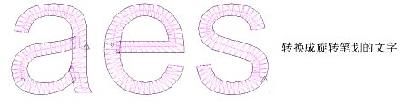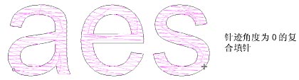 当您把TrueType字体转换成绣花文字,文字可以用旋转针迹或平行针迹来填绣。在任何阶段,您都可以在复合填针和旋转比划之间转换。