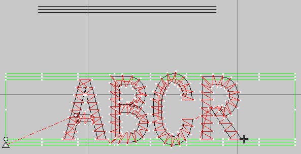 打英文字母时,为了车出来的字母不会有高低之分,我们通常都是要打些辅助线,(请注意我的花带只是给大伙参考辅助线,里面的字母我是用自动生成的。如果是正常打版是不充许的,记住,要想打好英文字母的话,就不能用自动打的给客人)