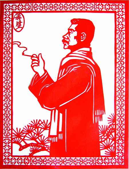 剪纸,包括用剪刀剪出和刻刀刻出的图样。在温州仅有用细纹刻纸表现的鲁迅形象,“文革”期间曾有作品出现,可惜鲜有人将其保存下来。