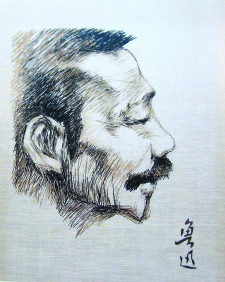 ▲《鲁迅》(发绣)1978年 魏敬先 作