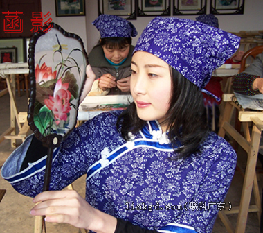负责人黄姐面试的时候就很喜欢我,我告诉她我的想法以后,她非常支持,还专门让我穿上绣娘的衣服,坐在绣桩前参加培训,于是我就穿上了蓝底白花的漂亮衣服,当起了绣娘。