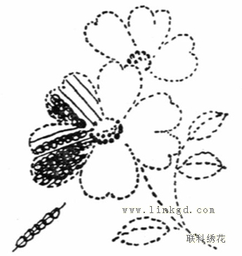 毛巾绣针法是将底线放松、面线收紧的一种绣法,绣制过程中,使底线翻上绣面而得到一种特殊的效果。操作时运针要直线进行,做到行行不乱,即可产生卷毛状的毛巾花纹。达到立体而不折光的装饰情趣。它能使平淡的块面图案。毛茸浑厚,惹人喜爱。如果行针时将直线行进改为连续打小圈的绣法,那么绣片上即可产生一连串的小菊花状花纹。这种针法便叫翻底菊花针,用来绣制装饰图案的花芯,效果甚佳。