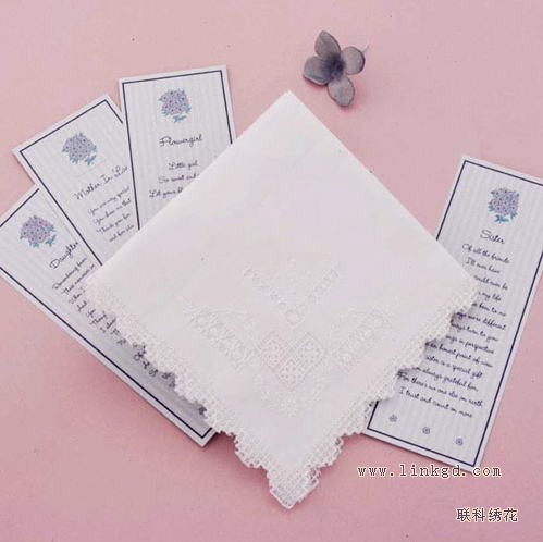 婚礼中我们除了发喜糖之外,更应该送所有宾客一件更有意义的礼物——婚礼手帕,手帕上面可以绣上对亲人们的名字与祝福,这更能让亲人们牢牢地记住新人幸福的时刻。