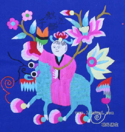 刘福美的家在朱岭村的一头,走进她的家,仿佛是进了一个民间艺术的殿堂。满屋都是精美的绣花,从床上的被单、枕头,到绣花拖鞋,再到堂屋沙发上、桌子上的装饰。一幅幅绣花,都在向人们展示着刘福美平凡而又美丽的人生。刘福美指着她家里的一幅幅绣花作品向记者一一做起了介绍,“这是万事如意的意思,这个是金钱如意,事事如意,这个是牡丹花,这个是小玫瑰花,这个是一对鸳鸯,这个是荷花,这个是莲子……都是我自己想着绣的。”