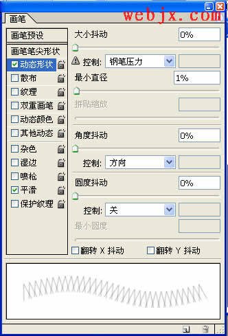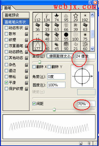 然后选择画笔工具,按F5打开画笔面板,设置如下。
