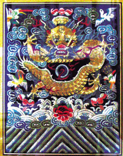 姚富瑛介绍,自元代开始,京绣将金银线用于刺绣,以显示金碧辉煌,贵重珍奇。明黄色调在中国传统是表示权势的。金银线是用黄金、白银锤箔、捻线,材质贵重,工艺复杂,把金银线盘成花纹后,用色线绣固在纺织平面上,叫做“盘金”,这种绣法在中国绣品中独一无二,尽显皇族气派,充分体现了富贵精美的宫廷审美艺术。现在所用的金银线,都是替代品。