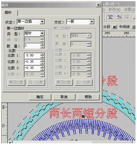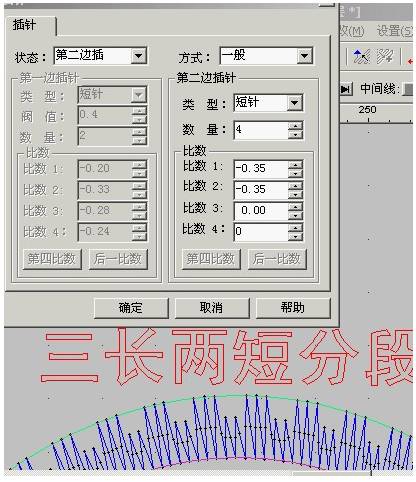 这是要用的富怡软件才能做出的效果,选中平包针,选属性-插针,如下图参数: