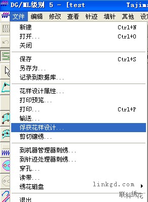 可以使用“文件--俘获花样设计”功能,然后选择图片格式为JPG,也可以是BMP。最后选择保存位置就行了。