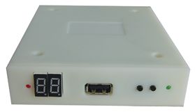 b、一体式 大部分劣质仿真软驱的增强版均是从其外壳内引出一根数据线连接一个小盒子,小盒子上面有2位数码管,三个按键(见下图)。与沁恒仿真软驱的一体式相比,其存在以下三方面的缺陷: 第一,安全稳定性低。数据线均是从PCB板上元器件焊点处直接接线出来的,在安装使用的过程中很容易出现接头脱落、数据线断裂、接头短路,严重的甚至会损坏价格不菲的机器。 第二,劣质仿真软驱的外接数据线一般经过34针软驱接口的位置,在安装34针软驱接口时很有可能会出现压断数据线的情况,并最终导致客户无法正常使用。 第三,在数据线与数码管小盒子的连接处,接口焊接很粗糙,接口处很容易断裂。 |