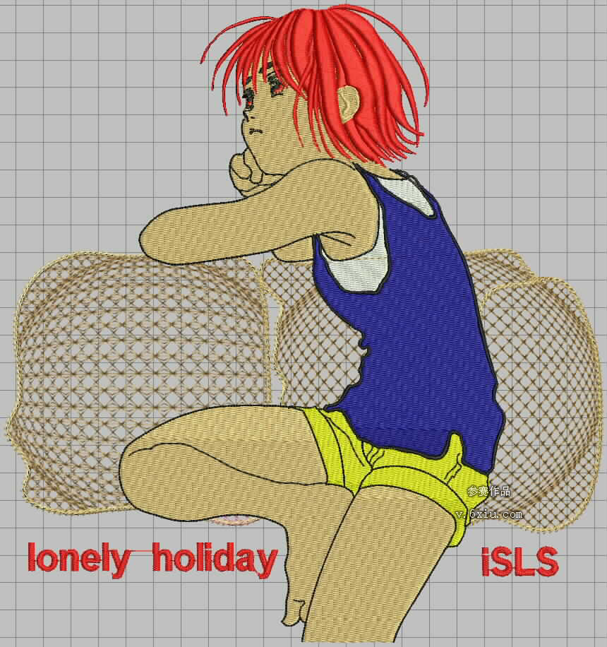作者:冯志刚 参赛作品名:漫画绣 花版介绍:漫画风格的尝试,刚刚开始学习打板,请大家多指教。 ==下载DST文件== 作品效果图: