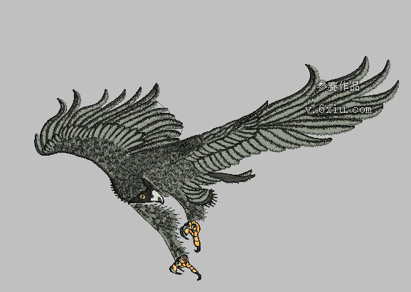 作者:莘 参赛作品名:鹰 花版介绍:都是一些很普通的针法。 ==下载DST文件== 作品效果图: