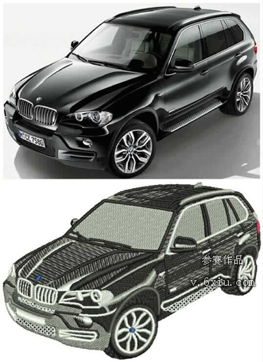 作者:擎风飞扬 参赛作品名:宝马X5 花版介绍:主要运用了,他他米针迹之间不同的方向来表示汽车的各个面的效果。 ==下载DST文件== 作品效果图: