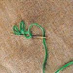 2 打结针脚法 就好像将成串的针脚一个一个分开了一般,并将线头上面的结扣死的方法,多用于刺绣小花朵或者叶子等。 |