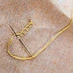 3 浮雕效果针脚法 使线走在针的下面并拉紧,按照一定的宽度和高度形成针脚,是日常生活中较为实用的刺绣手法之一,多用于缝制纽扣眼。 |