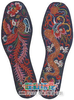 山西的“鞋垫”常常作为未婚女青年赠送未婚夫的礼物,常绣有福海无边、事事如意、莲花童子等图案花纹。