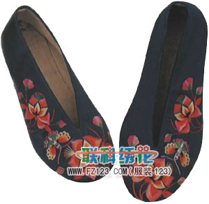 山西的“童鞋”,男孩多为老虎鞋、为虎头、侧有虎足、后有虎尾,向上掀起。在前面绣一绿色蟾蜍的名为蟾鞋,含有“蟾宫折桂金钱落地”的意念。忻州乡村中,还有小猪鞋、小狗鞋等等,都与当地民情风俗有关。女孩子的鞋子造型与男孩子相同,只是鞋前绣花图案取吉祥、欢快、饰以含有寓意的花鸟图案。