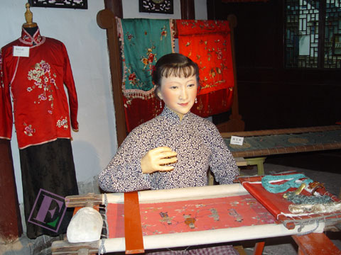 在男耕女织的社会下,数千年来,千千万万的女孩都要学习“女红”,掌握刺绣,宁波乡村中,有作刺绣的传统、心灵手巧的姑娘们用各色丝线,各种针法,绣出了光彩夺目的山水人物、楼台花鸟。这大大更新了服物,并提高了面料的观赏价值。
