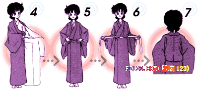 练习穿和服的基本步骤,熟练后,会穿的很漂亮,如果请别人帮忙的话,穿时容易,可要解下来就难了。 一、准备工作:穿上足袋(袜子)和内衬衣(一般为白色);
