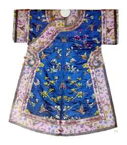 清代后妃日常穿的袍,样式与龙袍相同。只是面料、颜色、花纹随意。此袍为道光年制。