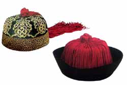 黑缎绣万寿字红绒结顶帽