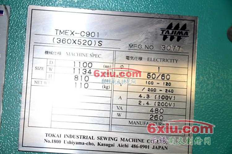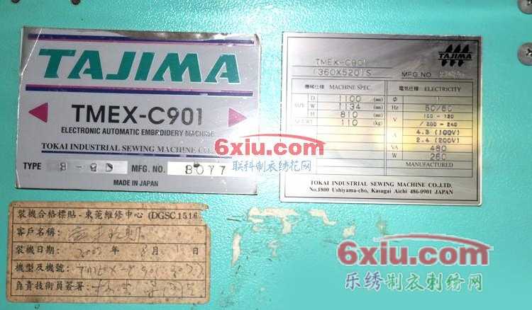 出售田岛电脑绣花机 2003年 单头机901 2台