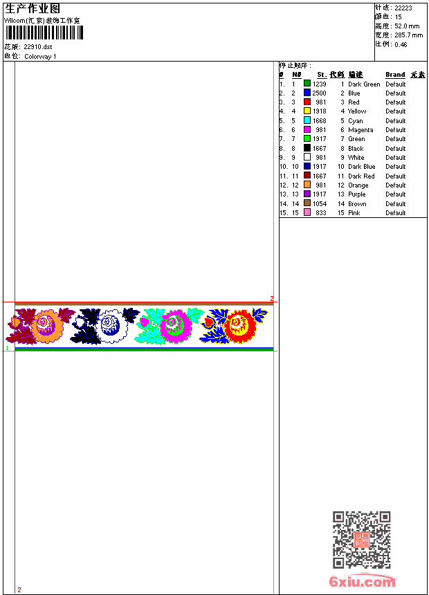 有规律的花卉排列图案 花版参数: 大小:65.61 KB / 尺寸:286*52[毫米] / 针数:22223针 / 线色:15 / 格式:dst / 版本:7 版带文件需绣花软件方可打开,可配色打印导出各种格式或直接上机绣。如无绣花软件可下载1:1模拟效果图。 图片信息:大小:304.50 kb 1081 x 197(像素) dst下载 1:1图下载 关闭 花样推荐 窗帘图案图案_下摆形状刺绣图案 中国风珠片花卉刺绣 匹绣珠片花卉 亮片衣领刺绣 漂亮的亮片花卉-金片刺绣 窗帘图案图案_窗帘布下摆刺绣图案 珠片刺绣图案_电脑图案图案_花版下载 女装亮片刺图案 窗帘下摆珠片刺绣 横条珠片刺图案样 上一个花样:玫瑰花匹绣_刺绣图案_电脑图案图案_花版下载 下一个花样:窗帘图案图案_下摆形状刺绣图案