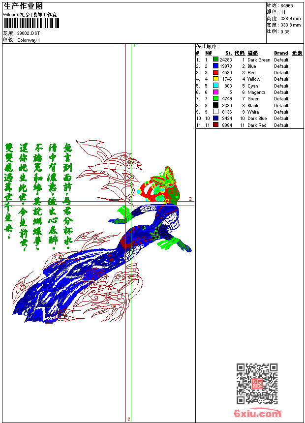 祝英台_诗歌刺绣工艺版 花版参数: 大小:249.42 KB / 尺寸:334*327[毫米] / 针数:84965针 / 线色:11 / 格式:dst / 版本:7 版带文件需绣花软件方可打开,可配色打印导出各种格式或直接上机绣。如无绣花软件可下载1:1模拟效果图。 图片信息:大小:1.22 M 1263 x 1237(像素) dst下载 1:1图下载 关闭 花样推荐 蝴蝶图案图案_像花又像蝴蝶的刺绣图案 排列花图案图案 几何图案图案图案 花卉刺绣图案_免费图案图案 排列花图案图案下载 家纺窗帘匹绣图案图案 下摆图案图案_有规律的图案图案 大花家纺图案图案 圆圈匹绣图案图案 窗帘刺绣图案免费下载 上一个花样:抽象风格小花图案 下一个花样:蝴蝶图案图案_像花又像蝴蝶的刺绣图案