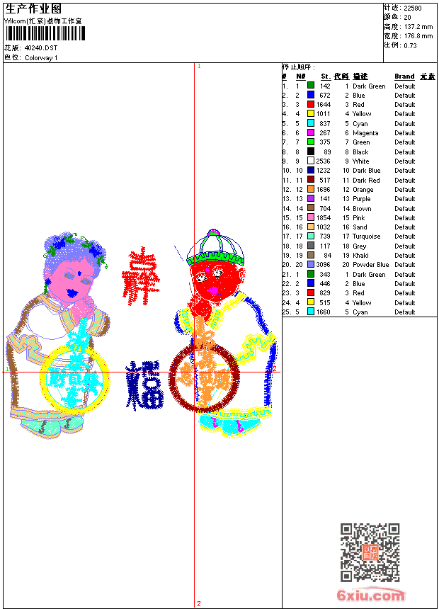 童男童女恭喜发财刺绣工艺版 花版参数: 大小:66.65 KB / 尺寸:177*137[毫米] / 针数:22580针 / 线色:20 / 格式:dst / 版本:7 版带文件需绣花软件方可打开,可配色打印导出各种格式或直接上机绣。如无绣花软件可下载1:1模拟效果图。 图片信息:大小:420.14 kb 669 x 519(像素) dst下载 1:1图下载 关闭 花样推荐 抽象风格小花图案 祝英台_诗歌刺绣工艺版 蝴蝶图案图案_像花又像蝴蝶的刺绣图案 排列花图案图案 几何图案图案图案 花卉刺绣图案_免费图案图案 排列花图案图案下载 家纺窗帘匹绣图案图案 下摆图案图案_有规律的图案图案 大花家纺图案图案 上一个花样:可爱的小姑娘 下一个花样:抽象风格小花图案