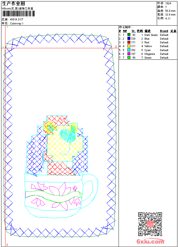 童装十字绣图案_杯子图案图 花版参数: 大小:6.14 KB / 尺寸:33*59[毫米] / 针数:1924针 / 线色:7 / 格式:dst / 版本:7 版带文件需绣花软件方可打开,可配色打印导出各种格式或直接上机绣。如无绣花软件可下载1:1模拟效果图。 图片信息:大小:33.35 kb 124 x 222(像素) dst下载 1:1图下载 关闭 花样推荐 蝶峦花_蝴蝶图案图案 吉祥唐装图案图案 脚趾图案图案_脚印图案图案_脚的刺绣图案 简单衣领形状图案图案 贴布图案_卡通小鸭_小鸡_图案图案 巴布工程师_图案图案 童装小花图案图案 可爱的小姑娘 童男童女恭喜发财刺绣工艺版 抽象风格小花图案 上一个花样:凤凰图案图案_吉祥刺绣图案 下一个花样:蝶峦花_蝴蝶图案图案