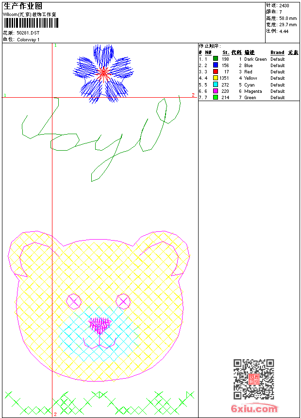 网格小熊刺绣图案_格子图案图案 花版参数: 大小:7.62 KB / 尺寸:30*58[毫米] / 针数:2430针 / 线色:7 / 格式:dst / 版本:7 版带文件需绣花软件方可打开,可配色打印导出各种格式或直接上机绣。如无绣花软件可下载1:1模拟效果图。 图片信息:大小:30.01 kb 113 x 220(像素) dst下载 1:1图下载 关闭 花样推荐 童装花朵图案_小花刺绣图案 小狗图案图案_童装卡通 猫头鹰汽球_童装卡通图案 蝴蝶花_抽象图案图案 老虎-狮子-豹-图案图案 抽像卡通图案图案 抽像图案图案 童装可爱小孩图案图案 狗狗图案图案_童装刺绣图 童装小花图案 上一个花样:小熊卡通图案图案 下一个花样:童装花朵图案_小花刺绣图案