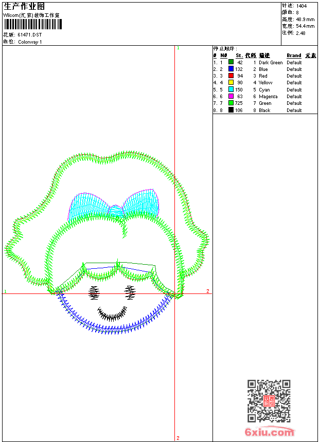 小女孩卡通版带 花版参数: 大小:4.61 KB / 尺寸:54*49[毫米] / 针数:1404针 / 线色:8 / 格式:dst / 版本:7 版带文件需绣花软件方可打开,可配色打印导出各种格式或直接上机绣。如无绣花软件可下载1:1模拟效果图。 图片信息:大小:30.91 kb 206 x 185(像素) dst下载 1:1图下载 关闭 花样推荐 小鸟站枝头_图案版带,电脑图案图案,图案图片 蝴蝶图案图案_刺绣图案 抽像卡通形像图案图案 包含多种针法的鸡的版带 卡通_小姑娘童装刺绣图案 三片树叶_图案版带,童装图案图案,刺绣图案 可爱的小鸭子 抽象版带_吉祥图案图案 袋鼠,鼠,图案图案,刺绣图案,电脑刺图案样 童装卡通图案图案 上一个花样:星星花_太阳花_长条花刺绣图案_电脑图案图案 下一个花样:小鸟站枝头_图案版带,电脑图案图案,图案图片