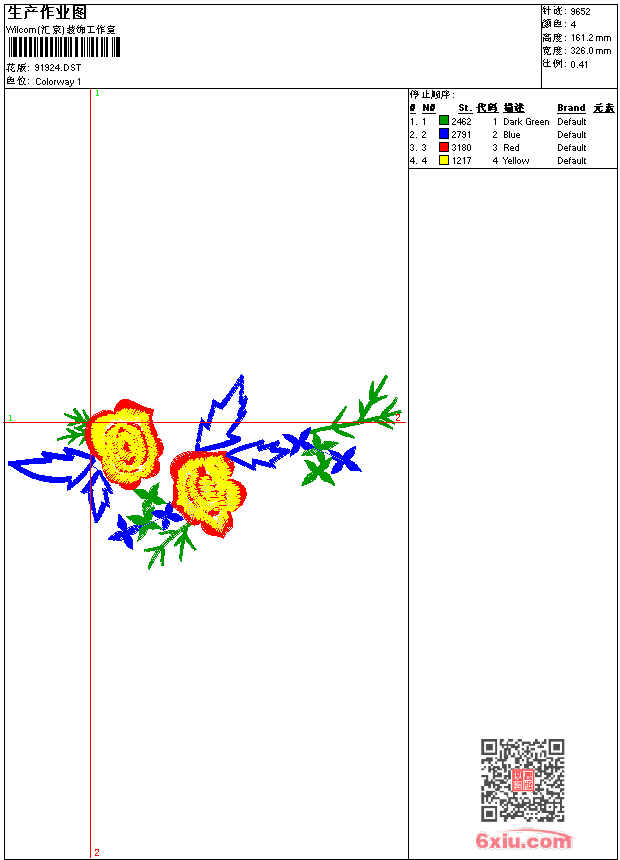 花卉图案图案 花版参数: 大小:28.78 KB / 尺寸:326*161[毫米] / 针数:9652针 / 线色:4 / 格式:dst / 版本:7 版带文件需绣花软件方可打开,可配色打印导出各种格式或直接上机绣。如无绣花软件可下载1:1模拟效果图。 图片信息:大小:454.46 kb 1234 x 610(像素) dst下载 1:1图下载 关闭 花样推荐 主题花纹抽像图案图案 秀气的花卉图案图案 抽象休闲裤图案图案,裤袋刺绣图案 衣领图案_衣服领子刺绣图案 抽象休闲裤图案图案 抽象对称的图案图案 休闲裤小花 抽象圆形花卉图案图案 领形版带 抽像牛仔裤图案图案 上一个花样:花朵图案图案 下一个花样:主题花纹抽像图案图案