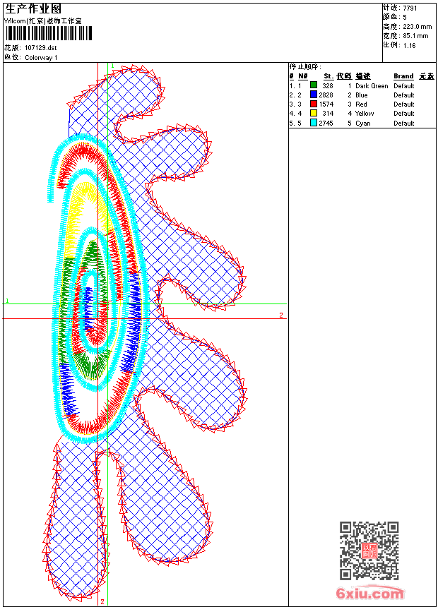 抽像休闲裤花花图案 花版参数: 大小:23.33 KB / 尺寸:85*223[毫米] / 针数:7791针 / 线色:5 / 格式:dst / 版本:7 版带文件需绣花软件方可打开,可配色打印导出各种格式或直接上机绣。如无绣花软件可下载1:1模拟效果图。 图片信息:大小:273.07 kb 322 x 844(像素) dst下载 1:1图下载 关闭 花样推荐 裤袋刺绣图案_图案图案 抽象花图案图案_刺绣图案 童装小花朵图案 花卉枝藤刺绣图 蝶峦花 几朵花与花枝组成的图案图案 玫瑰花 鞋片图案图案 抽象休闲裤图案图案 童装图案图案 上一个花样:心形玫瑰花图案图案 下一个花样:裤袋刺绣图案_图案图案