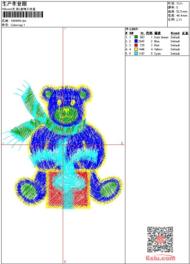 免费童装卡通花样 花版参数: 大小:21.92 KB / 尺寸:49*53[毫米] / 针数:7311针 / 线色:5 / 格式:dst / 版本:7 版带文件需绣花软件方可打开,可配色打印导出各种格式或直接上机绣。如无绣花软件可下载1:1模拟效果图。 图片信息:大小:58.40 kb 187 x 199(像素) dst下载 1:1图下载 关闭 花样推荐 免费童装卡通花样 免费童装卡通花样 免费童装卡通花样 免费童装卡通花样 免费童装卡通花样 免费童装卡通花样 免费童装卡通花样 免费童装卡通花样 免费童装卡通花样 免费小花系列5千针以下 上一个花样:免费童装卡通花样 下一个花样:免费童装卡通花样