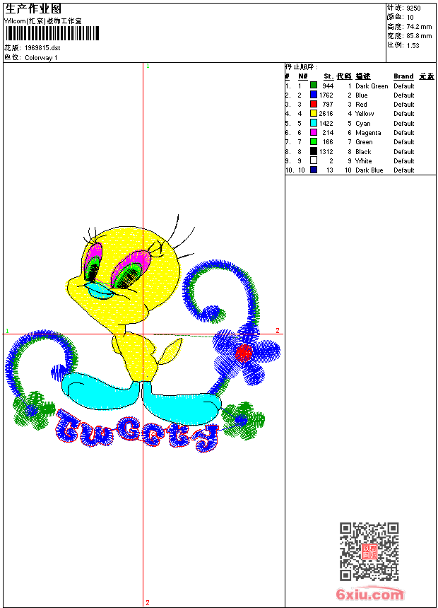 免费童装卡通花样 花版参数: 大小:27.60 KB / 尺寸:86*74[毫米] / 针数:9250针 / 线色:10 / 格式:dst / 版本:7 版带文件需绣花软件方可打开,可配色打印导出各种格式或直接上机绣。如无绣花软件可下载1:1模拟效果图。 图片信息:大小:105.75 kb 325 x 281(像素) dst下载 1:1图下载 关闭 花样推荐 免费童装卡通花样 免费童装卡通花样 免费童装卡通花样 免费童装卡通花样 免费童装卡通花样 免费童装卡通花样 免费童装卡通花样 免费童装卡通花样 免费童装卡通花样 免费童装卡通花样 上一个花样:免费童装卡通花样 下一个花样:免费童装卡通花样