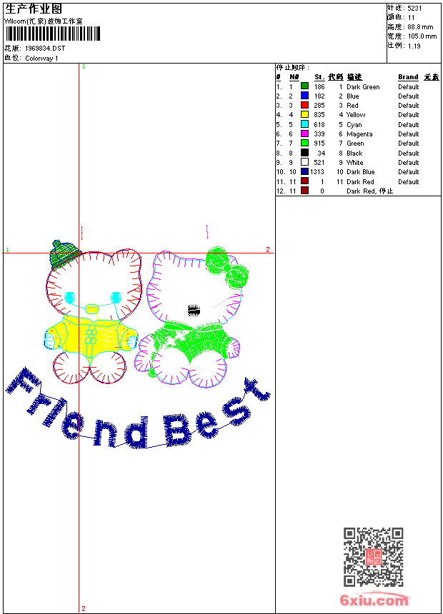 免费童装卡通花样 花版参数: 大小:15.83 KB / 尺寸:105*89[毫米] / 针数:5231针 / 线色:11 / 格式:dst / 版本:7 版带文件需绣花软件方可打开,可配色打印导出各种格式或直接上机绣。如无绣花软件可下载1:1模拟效果图。 图片信息:大小:103.63 kb 398 x 336(像素) dst下载 1:1图下载 关闭 花样推荐 免费童装卡通花样 免费童装卡通花样 免费童装卡通花样 免费童装卡通花样 免费童装卡通花样 免费童装卡通花样 免费童装卡通花样 免费童装卡通花样 免费童装卡通花样 免费童装卡通花样 上一个花样:免费童装卡通花样 下一个花样:免费童装卡通花样
