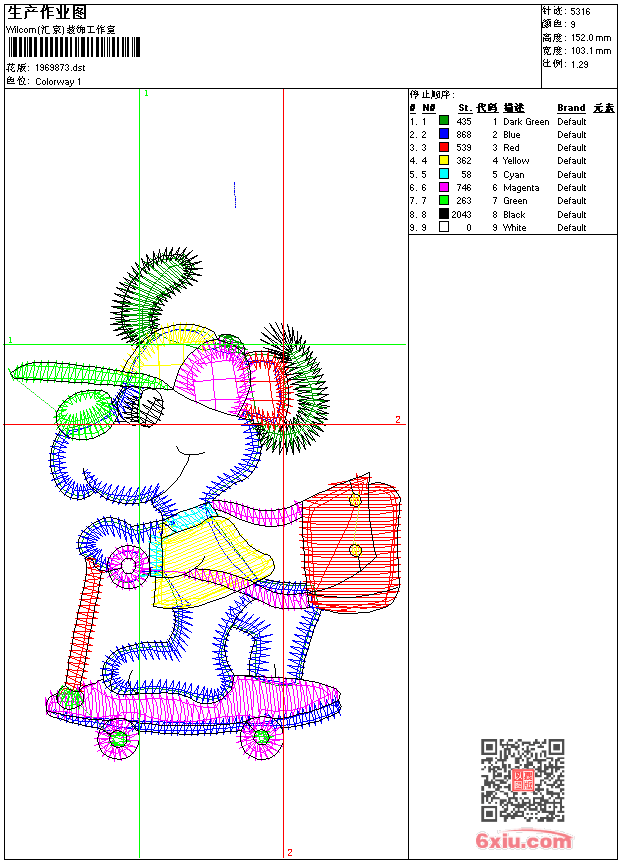 免费童装卡通花样 花版参数: 大小:16.08 KB / 尺寸:103*152[毫米] / 针数:5316针 / 线色:9 / 格式:dst / 版本:7 版带文件需绣花软件方可打开,可配色打印导出各种格式或直接上机绣。如无绣花软件可下载1:1模拟效果图。 图片信息:大小:192.17 kb 390 x 575(像素) dst下载 1:1图下载 关闭 花样推荐 免费童装卡通花样 免费童装卡通花样 免费童装卡通花样 免费童装卡通花样 免费童装卡通花样 免费童装卡通花样 免费童装卡通花样 免费童装卡通花样 免费童装卡通花样 免费童装卡通花样 上一个花样:免费童装卡通花样 下一个花样:免费童装卡通花样