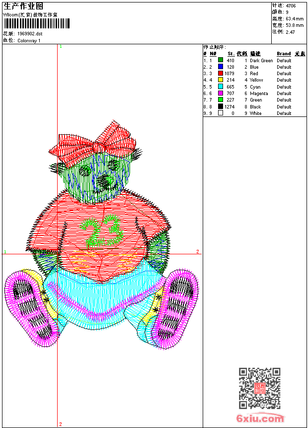 免费童装卡通花样 花版参数: 大小:14.29 KB / 尺寸:54*63[毫米] / 针数:4706针 / 线色:9 / 格式:dst / 版本:7 版带文件需绣花软件方可打开,可配色打印导出各种格式或直接上机绣。如无绣花软件可下载1:1模拟效果图。 图片信息:大小:74.74 kb 204 x 240(像素) dst下载 1:1图下载 关闭 花样推荐 免费童装卡通花样 免费童装卡通花样 免费童装卡通花样 免费童装卡通花样 免费童装卡通花样 免费童装卡通花样 免费童装卡通花样 免费童装卡通花样 免费童装卡通花样 免费童装卡通花样 上一个花样:免费童装卡通花样 下一个花样:免费童装卡通花样