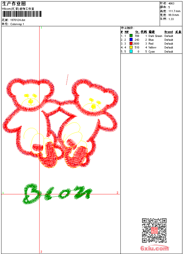 免费童装卡通花样 花版参数: 大小:12.40 KB / 尺寸:100*112[毫米] / 针数:4063针 / 线色:5 / 格式:dst / 版本:7 版带文件需绣花软件方可打开,可配色打印导出各种格式或直接上机绣。如无绣花软件可下载1:1模拟效果图。 图片信息:大小:124.21 kb 378 x 423(像素) dst下载 1:1图下载 关闭 花样推荐 免费童装卡通花样 免费童装卡通花样 免费童装卡通花样 免费童装卡通花样 免费童装卡通花样 免费童装卡通花样 免费童装卡通花样 免费童装卡通花样 免费童装卡通花样 免费童装卡通花样 上一个花样:免费童装卡通花样 下一个花样:免费童装卡通花样