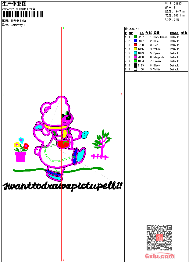 免费童装卡通花样 花版参数: 大小:64.71 KB / 尺寸:242*195[毫米] / 针数:21915针 / 线色:9 / 格式:dst / 版本:7 版带文件需绣花软件方可打开,可配色打印导出各种格式或直接上机绣。如无绣花软件可下载1:1模拟效果图。 图片信息:大小:376.10 kb 916 x 737(像素) dst下载 1:1图下载 关闭 花样推荐 免费童装卡通花样 免费童装卡通花样 免费童装卡通花样 免费童装卡通花样 免费童装卡通花样 免费童装卡通花样 免费童装卡通花样 免费童装卡通花样 免费童装卡通花样 免费童装卡通花样 上一个花样:免费童装卡通花样 下一个花样:免费童装卡通花样