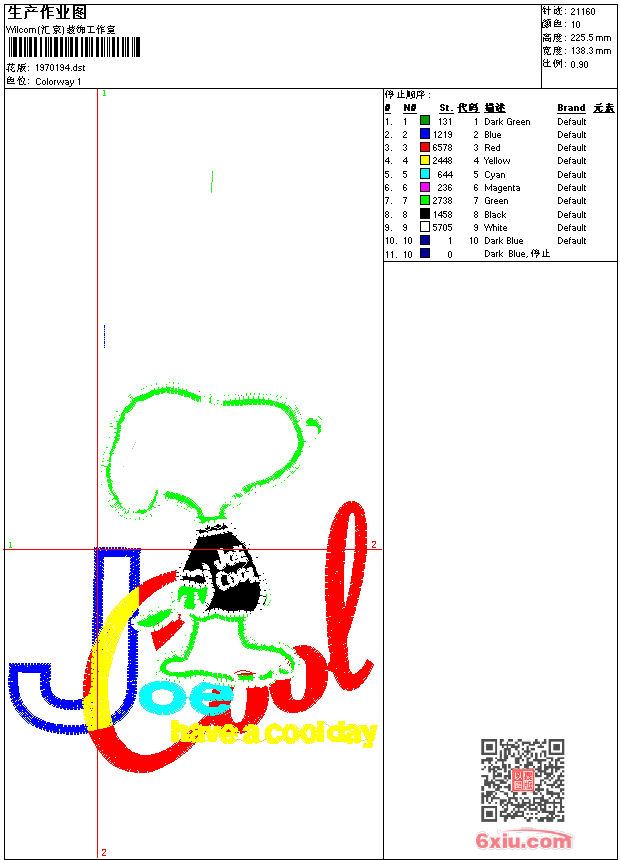 免费童装卡通花样 花版参数: 大小:62.49 KB / 尺寸:138*226[毫米] / 针数:21160针 / 线色:10 / 格式:dst / 版本:7 版带文件需绣花软件方可打开,可配色打印导出各种格式或直接上机绣。如无绣花软件可下载1:1模拟效果图。 图片信息:大小:252.27 kb 524 x 853(像素) dst下载 1:1图下载 关闭 花样推荐 免费童装卡通花样 免费童装卡通花样 免费童装卡通花样 免费童装卡通花样 免费童装卡通花样 免费童装卡通花样 免费童装卡通花样 免费童装卡通花样 免费童装卡通花样 免费童装卡通花样 上一个花样:免费童装卡通花样 下一个花样:免费童装卡通花样